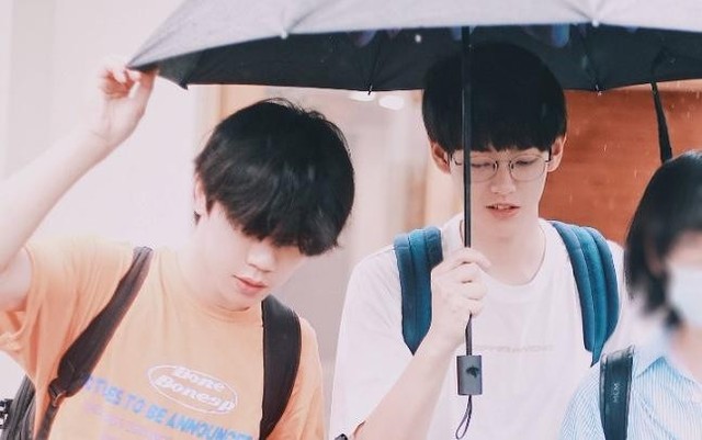 眼尖的赵岑源还发现白衣少年左肩微微被雨水打湿,而橘黄色短袖的人滴雨未沾。同时,他手里还拿着另一把雨伞。
