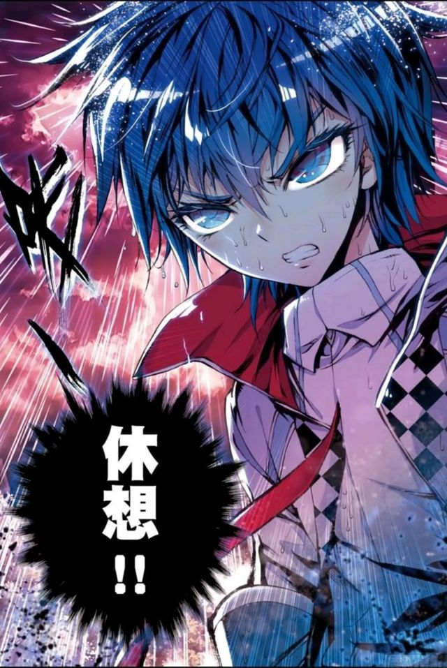 冰蓝色的碎发贴着脸旁,眼眸炯炯有神,异常的坚毅。
