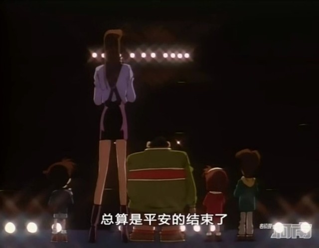 突然,开始有光彩夺目的灯光聚集在台上,高山美奈美边唱着美妙的歌边牵着柯南走了出来。
