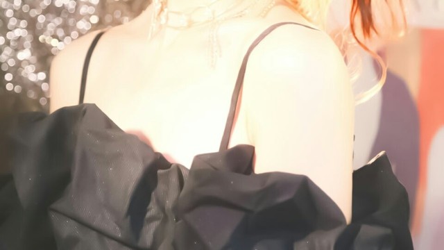 时年欢穿着吊带黑色短裙