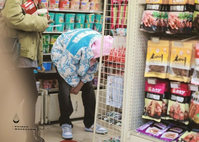 便利店很大,她走到一个货架边被某个身影吸住了目光