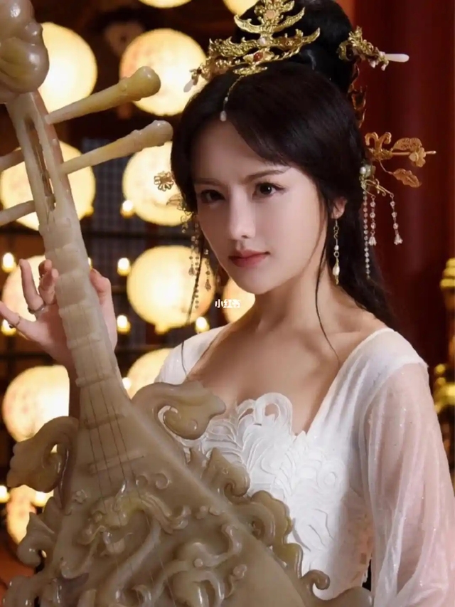 檀木拨片在掌心转了个圈,她歪头时,青丝扫过琵琶背板,映得素手愈发莹润。忽然指尖一挑,高音如裂帛,座上有人碰翻茶盏,她却似浑然不觉,眼波流转间,连琵琶上的螺钿花纹都跟着醉了。