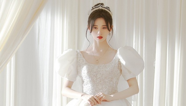 她穿着白色的婚纱化着妆头上盯着一个皇冠漂亮的不像话这是范丞丞第一次见她这个样子当然这一辈子他也就只能见这一次了。