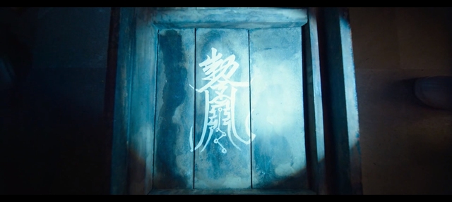 几个人把桌子翻了过来,死者死在这张桌子下,而桌底却画有一个奇怪的符号。