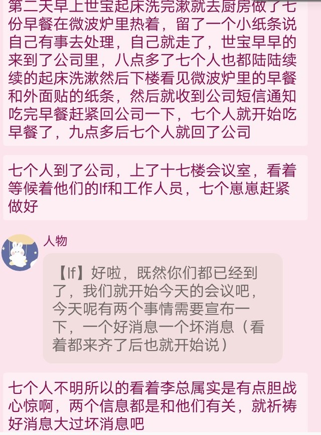 人物【lf】那我们就先苦后甜吧,先说坏消息吧……我们公司和世世的合约到期了,她也不打算在继续签后续的合同了(看着七双眼睛看着自己,清了清嗓子说道)