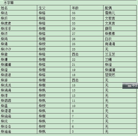 水字辈(注:柴筠女儿的孩子不会显示在上面)