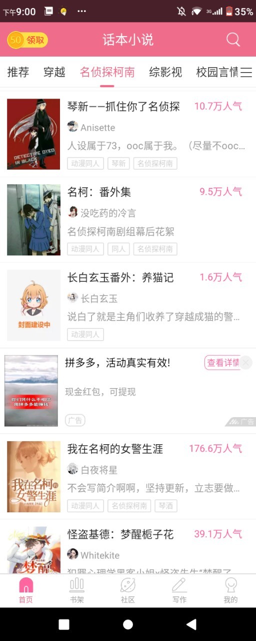 作者第1次看见我的作品上推荐