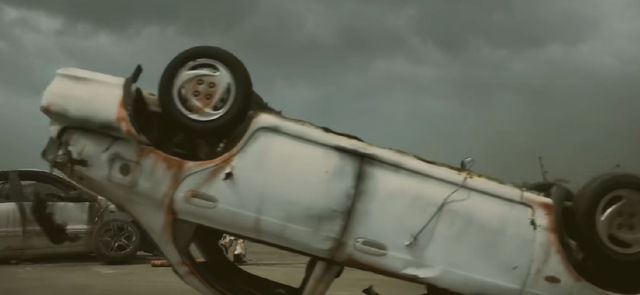 到了汽车厂,是胡乱堆砌的汽车元件,成品汽车的玻璃上是厚厚的灰尘。这些车还未出厂变成完整商品用于交换就因为突如其来的变故积压。