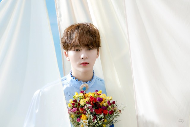 画里是夫胜宽穿着浅蓝色的衣服,拿着一束花,站在风吹的白色布帘下,那是夫胜宽对叶云澄的等待与爱