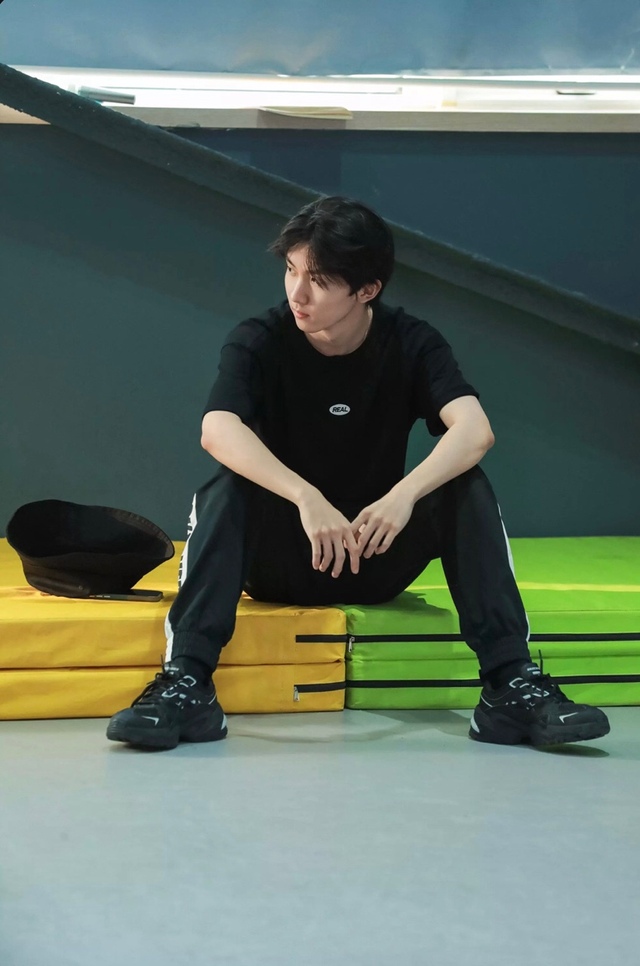 宋亚轩瘫在练习室的垫子上。