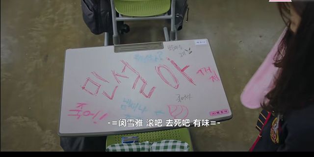露娜结束惩罚时间回到教室却发现自己的桌上有一块布,扯下来上面写着不堪的话,而全班都哄堂大笑