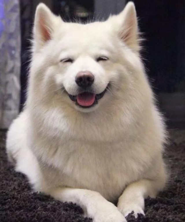 灿烈冲我笑得一脸灿烂,这时候萨摩耶过来凑热闹了。看见主人如此开心,它背上驮着已经有些长大的小橘猫,也跟着一起欢快地摇起尾巴,还用舌头舔我们的裤腿。