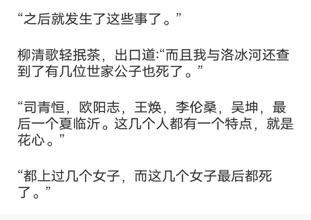 “说你蠢就是真的蠢,这些人可以分为两部分,一部分男子,一部分女子,男子女子都有其相同的特点。男子那一方为花心,女子这一方都与其那几位花心的纨绔子弟有牵扯。两部分毫不相关的人都有人死亡,就说明这是两波不同目的的人。但如今死者只有男性,且男性死亡是在那些女子死亡后才死去的。”