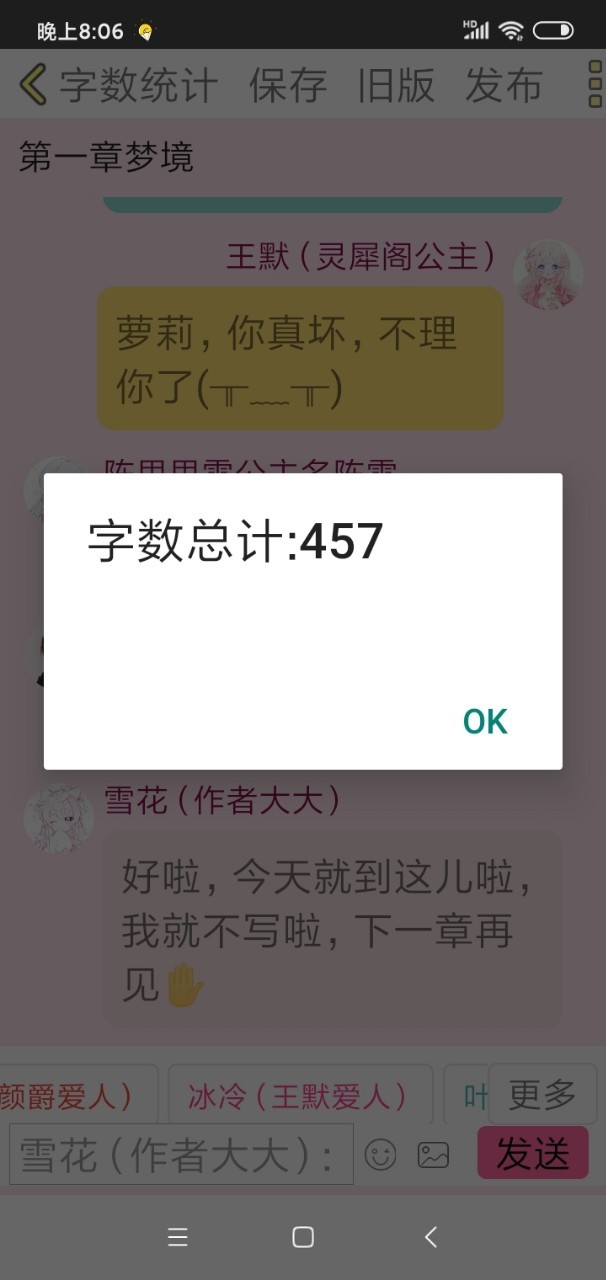 雪花(作者大大)今天写了457个字诶,拜拜