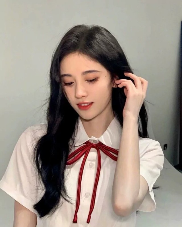 鞠婧祎穿着一身干净整洁的校服,马尾高高束起,清纯中带着不食人间烟火的仙气,如高岭之花一般,可望而不可即