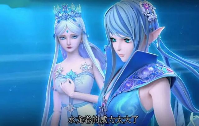 她的法术引来了许多的雪花冰晶附在了水王子的水龙之上,水龙变成了冰霜之龙。