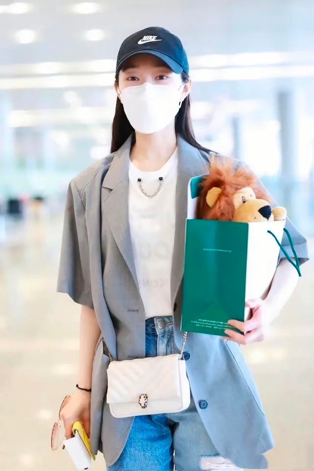 助理给她拿着鸭舌帽和口罩说道