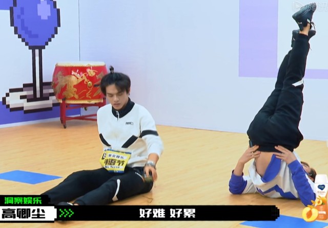 然后刘宇把他的动作做了一遍,然后小九跟好奇就跟着学。
