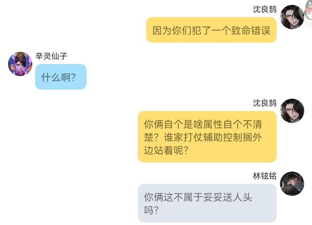 沈良鹄你俩自个是啥属性自个不清楚?谁家打仗辅助控制搁外边站着呢?