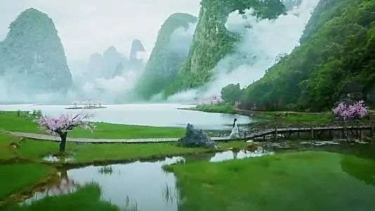 花月骄傲的带着狂画师漫步在青丘里,欣赏着景色,介绍着青丘。