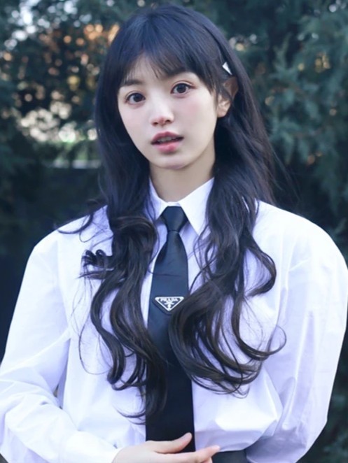 女生的丸子头放下来了,还卷了头发。