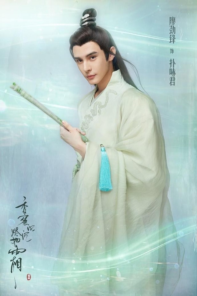 他穿一身青绿罗衣,衣服是冰丝雪绸,绣着雅致竹叶的雪白滚边和他头上的羊脂玉发簪交相辉映。