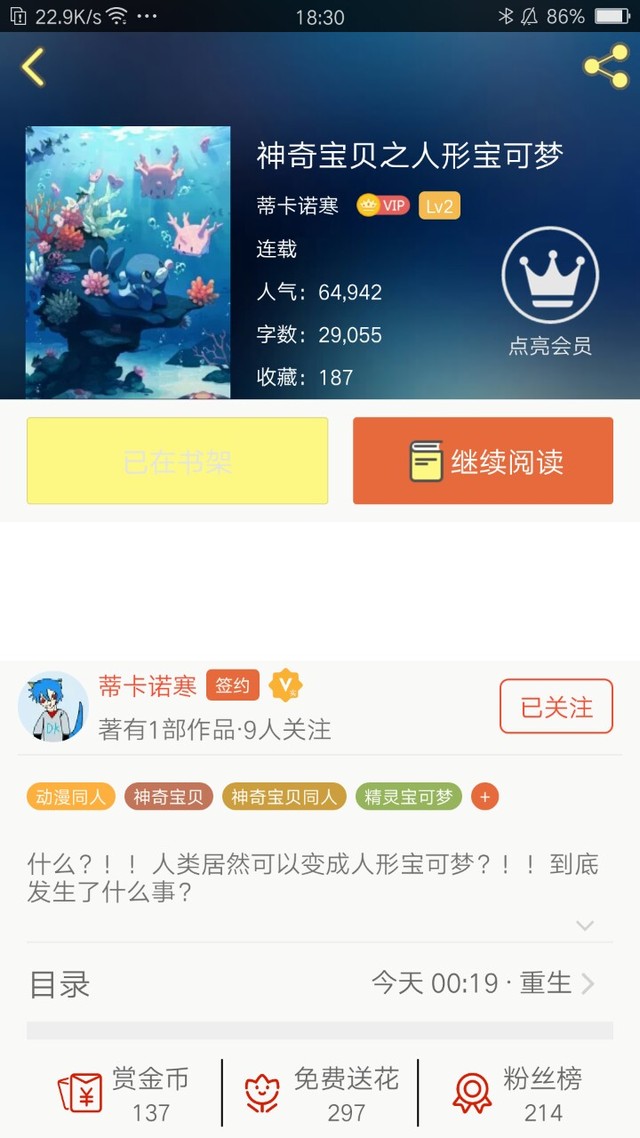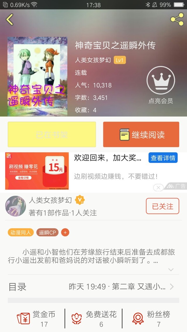 作者为了庆祝作者大大的这本书,人气值过了1万。