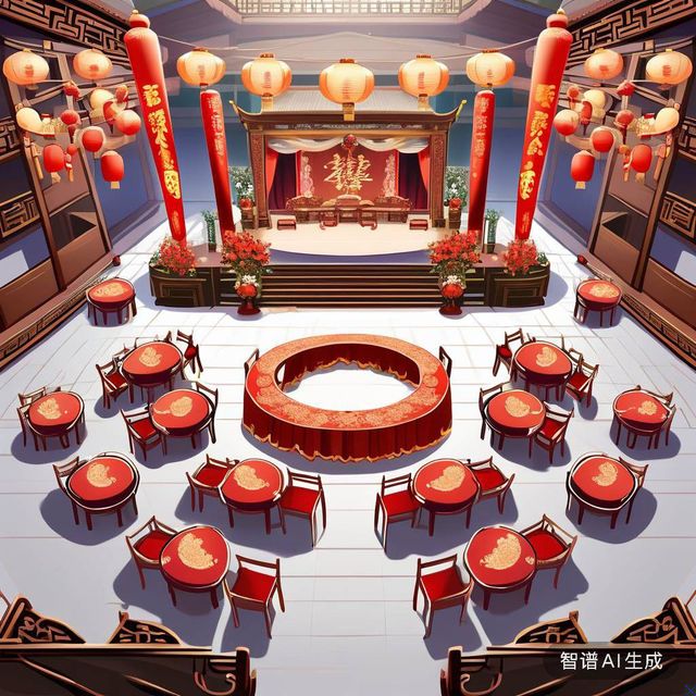 芳仪斋,一个充满华丽与传统气息的场所,是古代中国订婚仪式的举办地。其内部装饰精致考究,每一个细节都体现了浓郁的文化底蕴和喜庆氛围。