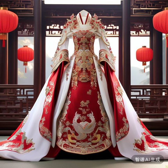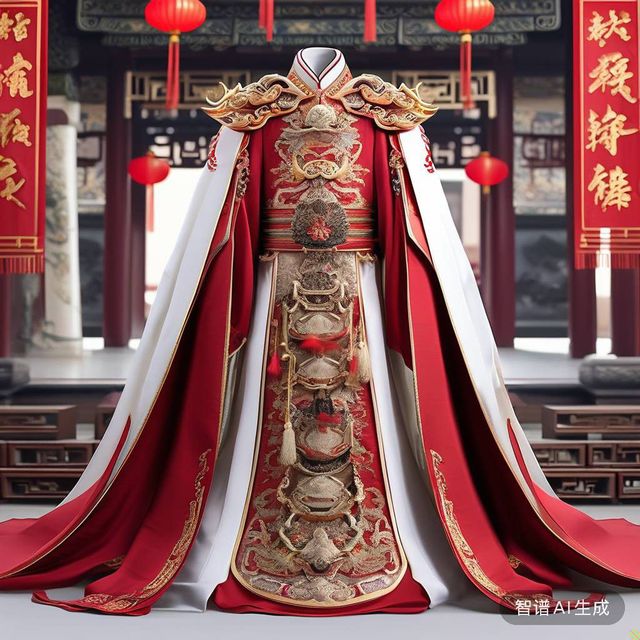 萧锦昀(华伦恢复真身后)身穿一袭红色喜服,上面刻有金色龙纹以及图案。