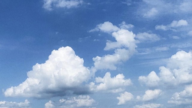 蔚蓝的天空上飘着朵朵白云,是今日份的风景,带给人们一天的好心情
