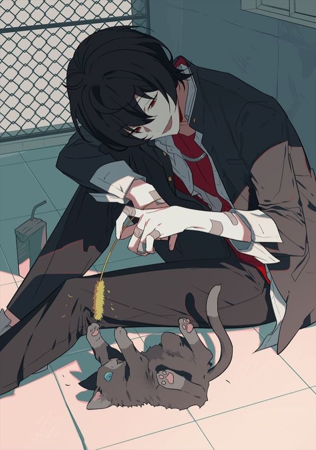 夏木川睡觉,逗猫,看书。