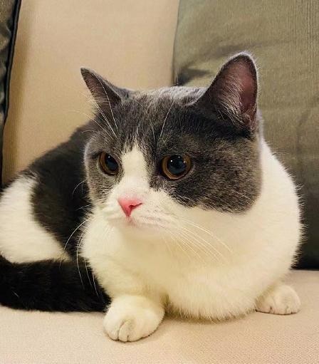 坚果发现主人不是很开心的模样,仰着小脑袋喵呜了一声。