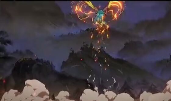 朱雀飞到村桥上,冲击波从朱雀发出,闻人堋悬双手用力向地面砸去,火焰从地面喷出,形成的火墙