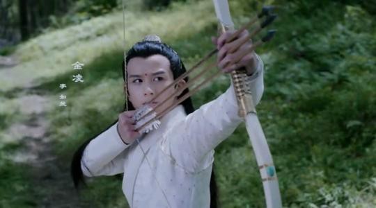 金凌的声音从斜后方传来,只见他身姿轻灵踏过石壁,背上背了去取来的箭,搭弓三箭齐发均直射舞天女。