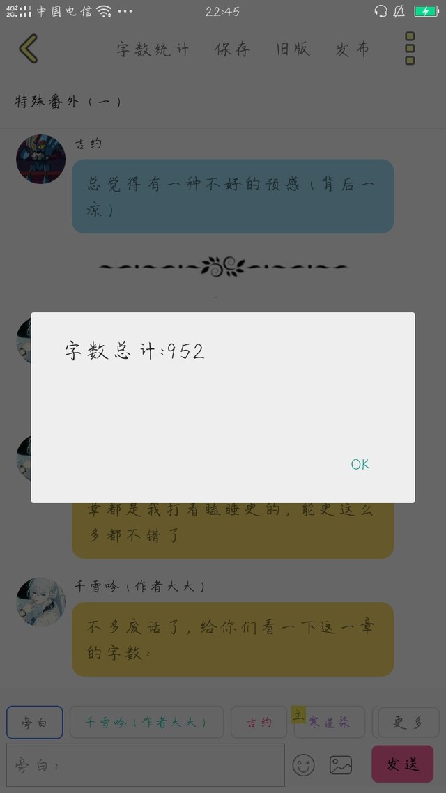 千雪吟(作者大大)大概一千字的字数,我现在可比以前勤快多了