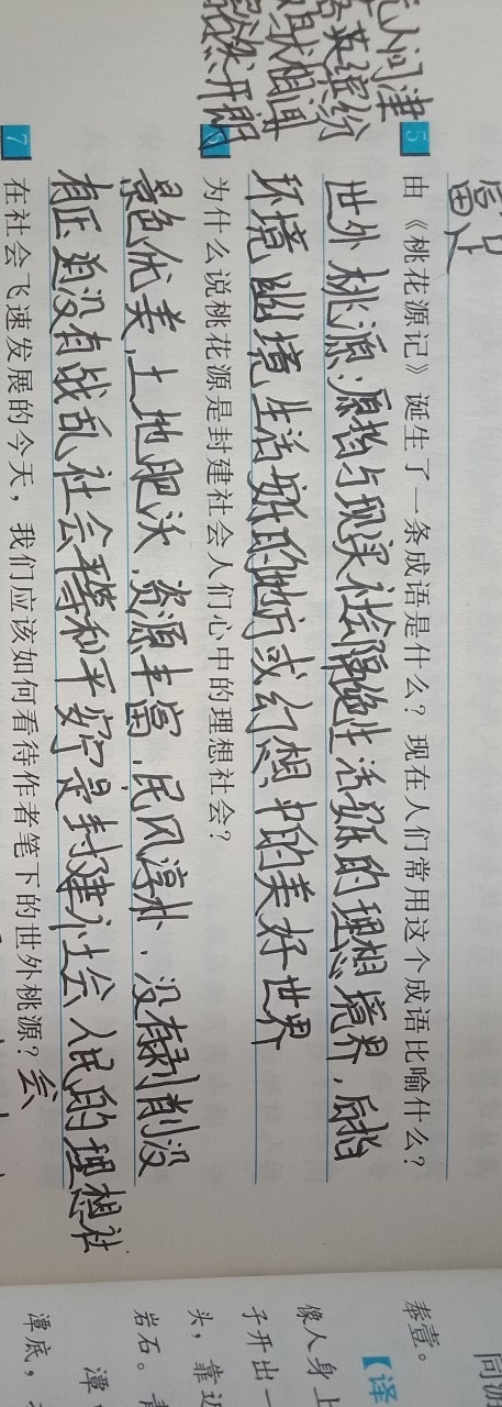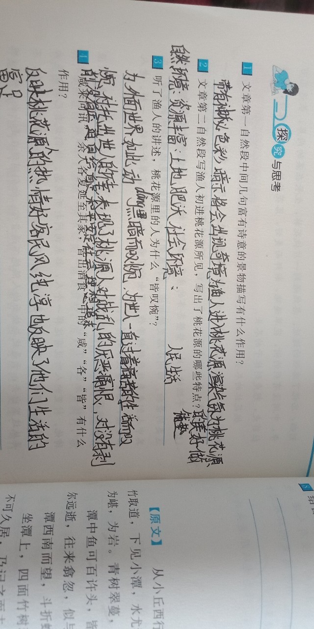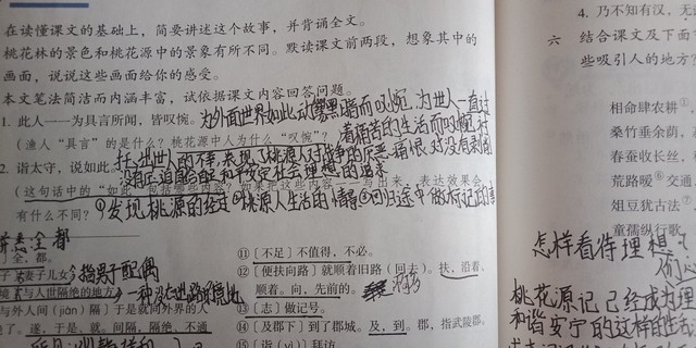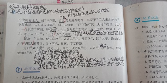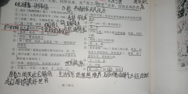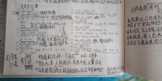 作者答案是:①发现桃源的经过②桃源人生活的情景③回归图中做记号的事
