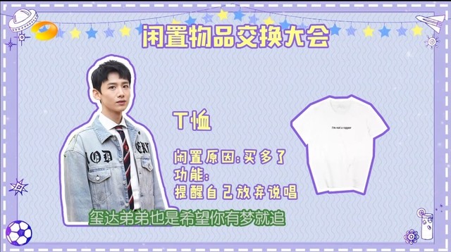 何老师今天我们派出了tf家族中的三位作为主导人 由你们来为主 进行闲置物品的交换 ,当然还有我们的江南汐小朋友