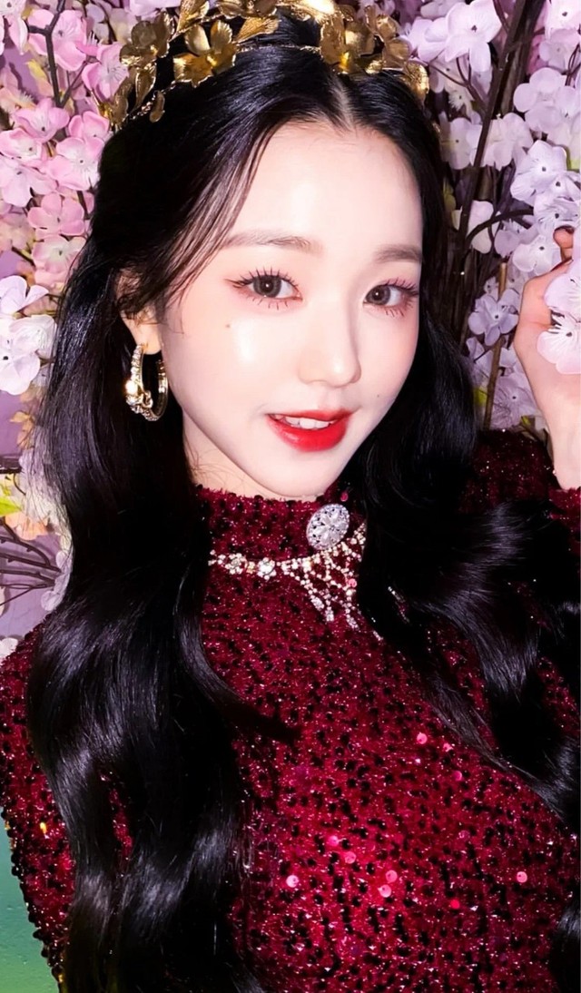 小脸依旧是稚气可爱,化上庄重成熟的妆容多了几分女人味儿。