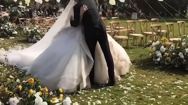 苏糯拿上戒指在两对新人面前,宋亚轩和唐雪给对方带上戒指之后相互拥抱