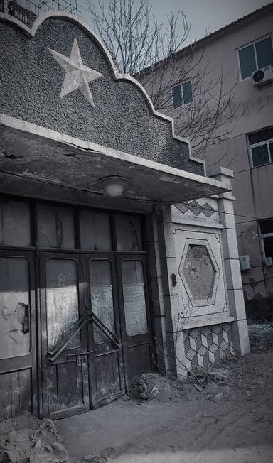 剧场外显得格外阴森树木都已经干掉了房子也慢慢老化,窗户玻璃有的已经破了一个大洞。