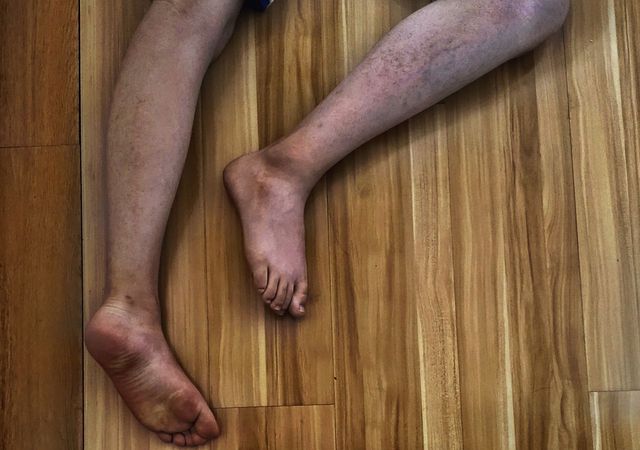 喻文的尸体趴在下边,地上还有一摊血迹,周围的室友已经慌乱的跑了出去,就留下一具尸体趴在木地板上。