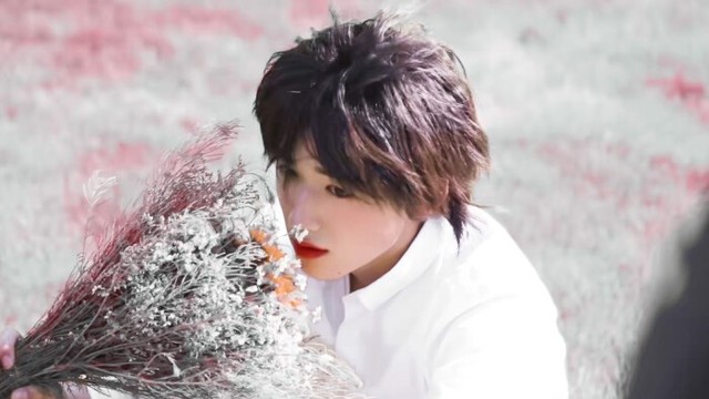 电梯门打开,计杳一眼便看到张真源坐在不远处听歌。