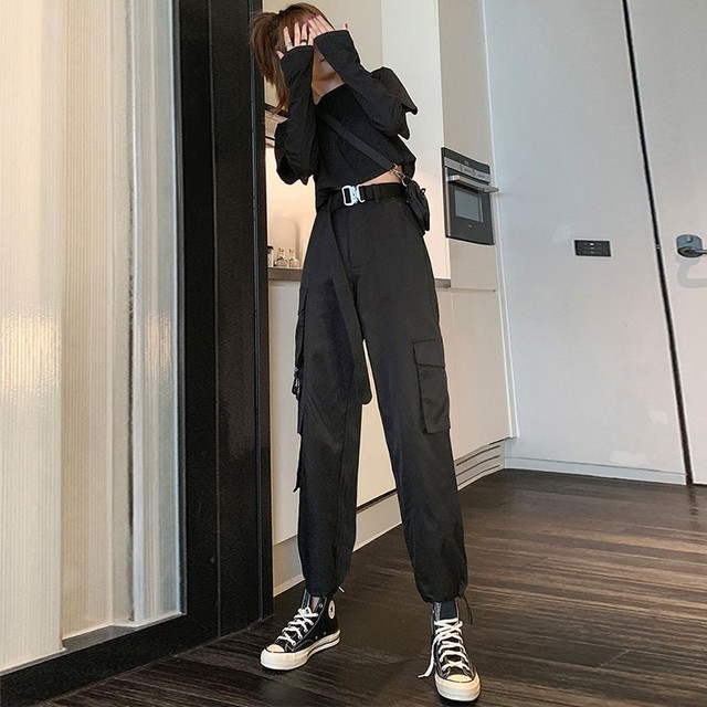 一个穿着黑色短T shit,黑色工装裤,黑色高帮帆布鞋地高马尾女生走了进来
