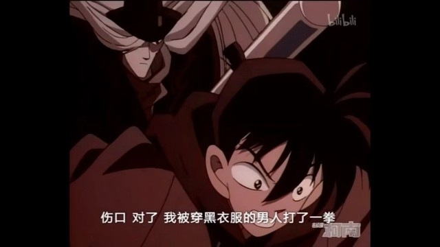 柯南(心想:伤口?对了!我被穿黑衣服的男人打了一拳!)
