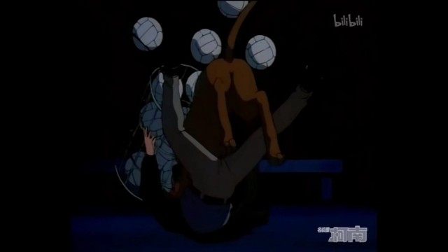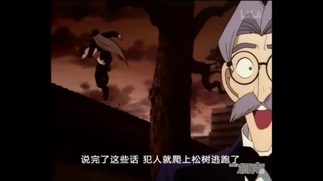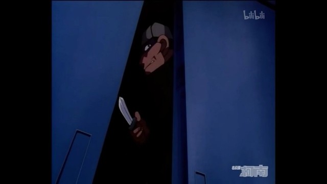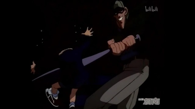 犯人(用球棒打飞柯南)呃啊!