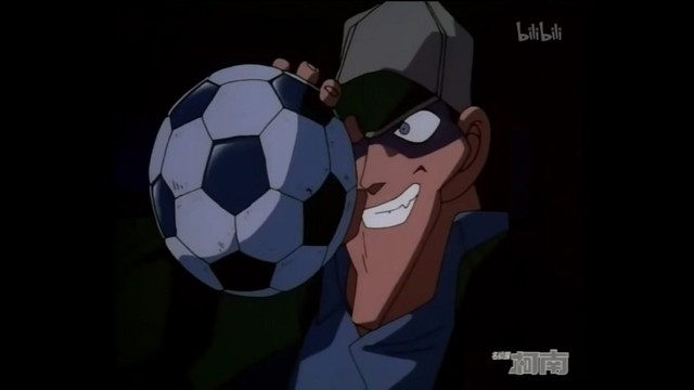 柯南看我的!(把足球踢向歹徒)