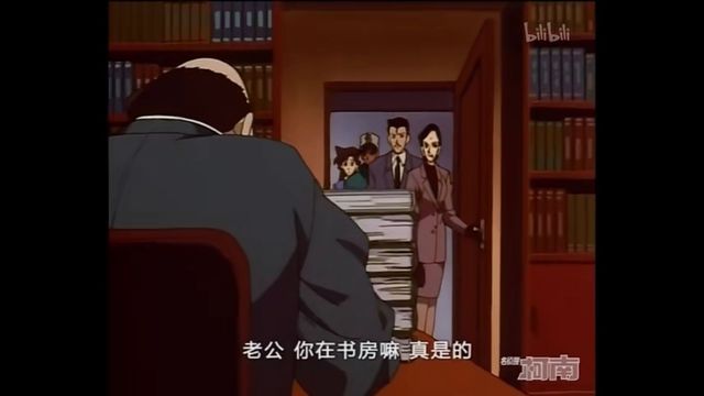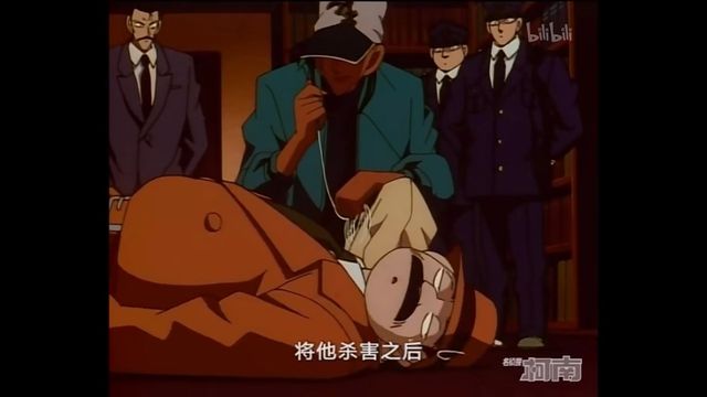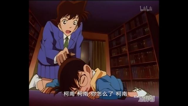 柯南呼…呼…(心想:尸体的前面这些书摆得太不寻常了,而且凶案现场播放的歌剧…)