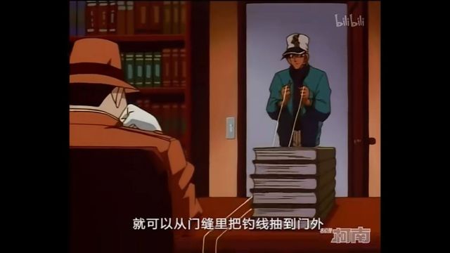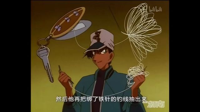 服部平次接着把钓线绑在钥匙上,再将钓线拉过去就可以了