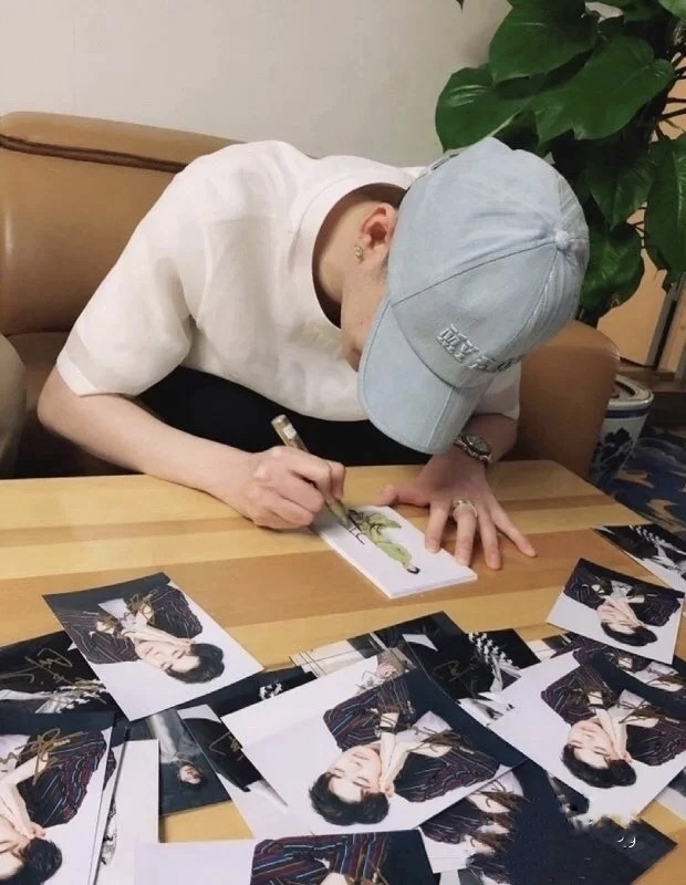 赶快把扇子拿来了,马上就签好了