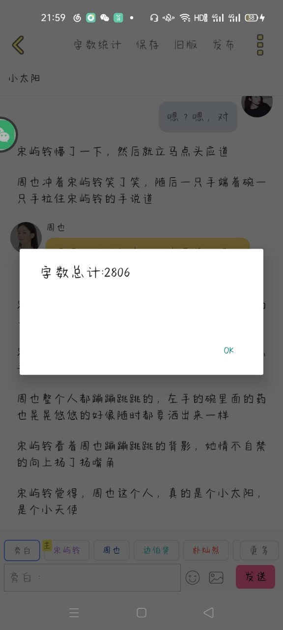 宋屿铃抱了周也一会儿以后就松开了她问到